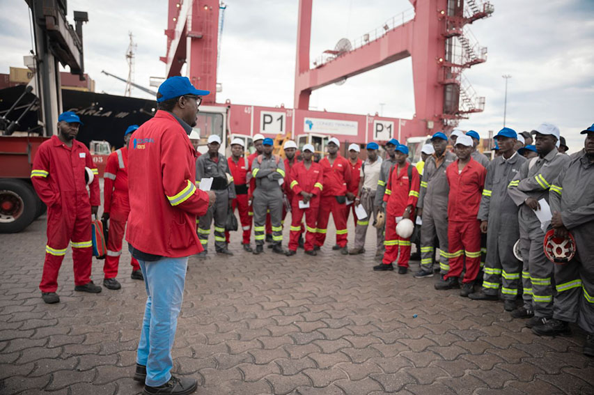 Une action couplée à la journée africaine de la sécurité routière. Lors de cette sensibilisation, Guy Michel PASSI, Responsable HS/Sûreté, a également insisté sur l’application des consignes liées aux codes ISPS (sûreté portuaire) et Pedestrian Free Yard (terminal sans piétons) qui régissent la sécurité du personnel évoluant au Terminal à conteneurs.