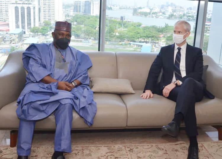 -Abdul Samad Rabiu, à gauche du ministre sur notre photo, fondateur et dirigeant, entre autres, du de Bua Group, qui investit actuellement dans une raffinerie de pétrole dont la conception et la construction ont été confiées à la société d’ingénierie française Axens, filiale du groupe IFPEN. Une lettre d’intention avait été signée en septembre à Paris en présence de Franck Riester.