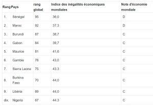 Pour rappel, World Economics est une plate-forme de données qui complète les données officielles (utilisables) par des enquêtes trimestrielles régulières, a développé un indice mondial des inégalités économiques. Ce rapport analyse les données internationales sur les inégalités de la Banque mondiale à l’aide des coefficients de L’indice de Gini qui mesure l’égalité de la répartition des revenus d’un pays.