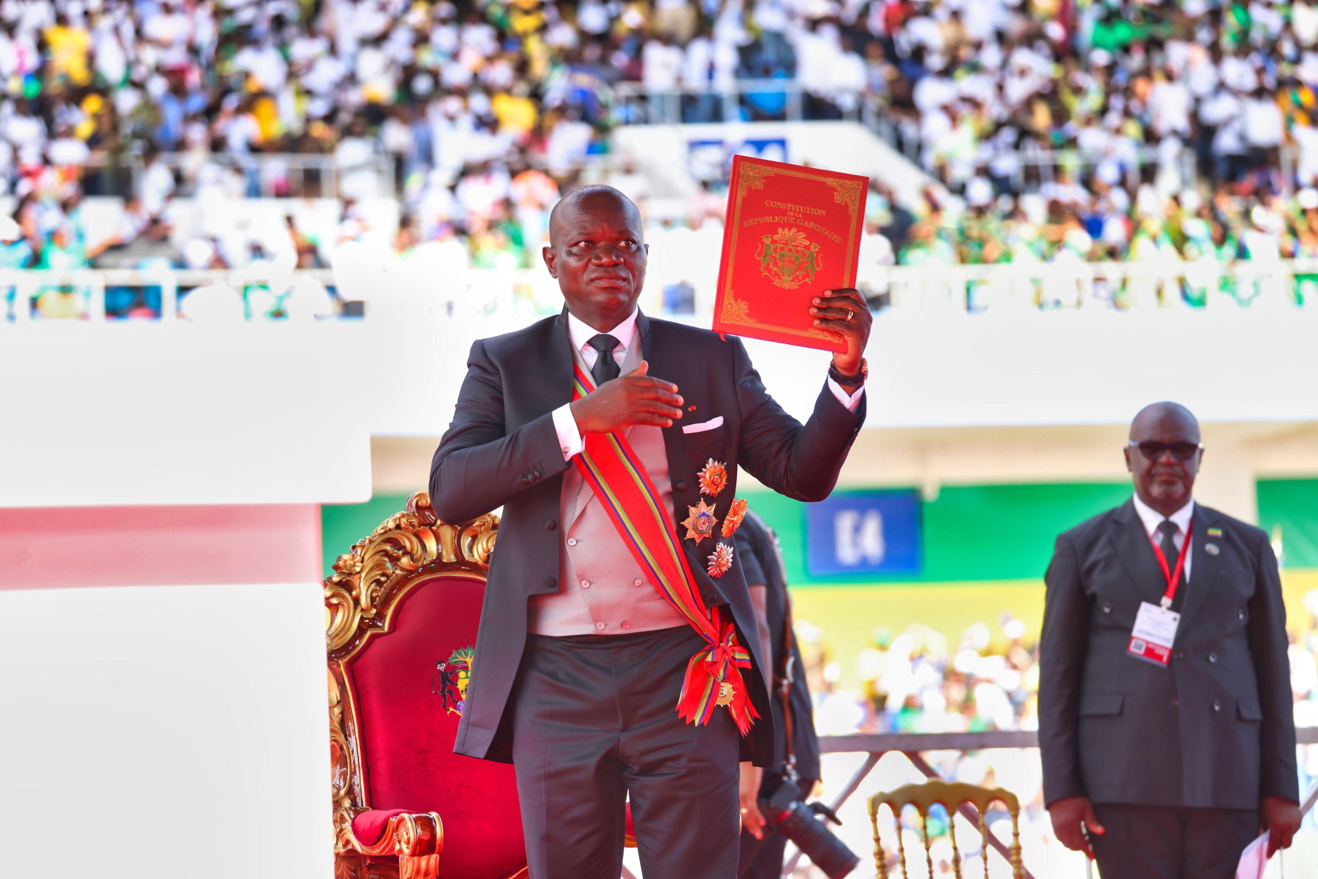 Élu avec 94,85% de suffrages, Brice Clotaire Oligui Nguema a prononcé ce jour devant les membres de la Cour Constitutionnelle et de l’Assemblée nationale son serment conformément aux dispositions de l’article 45 de la nouvelle Loi fondamentale gabonaise. Recevant les attributs républicains et traditionnels du pouvoir, le président de la République a réaffirmé son engagement à servir et protéger la Patrie.